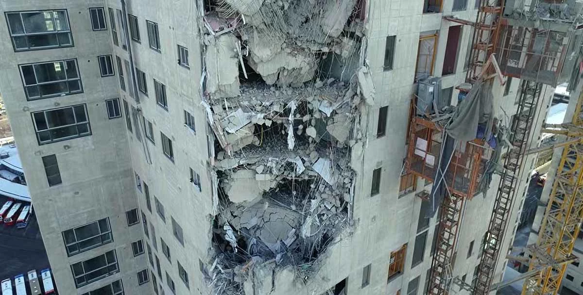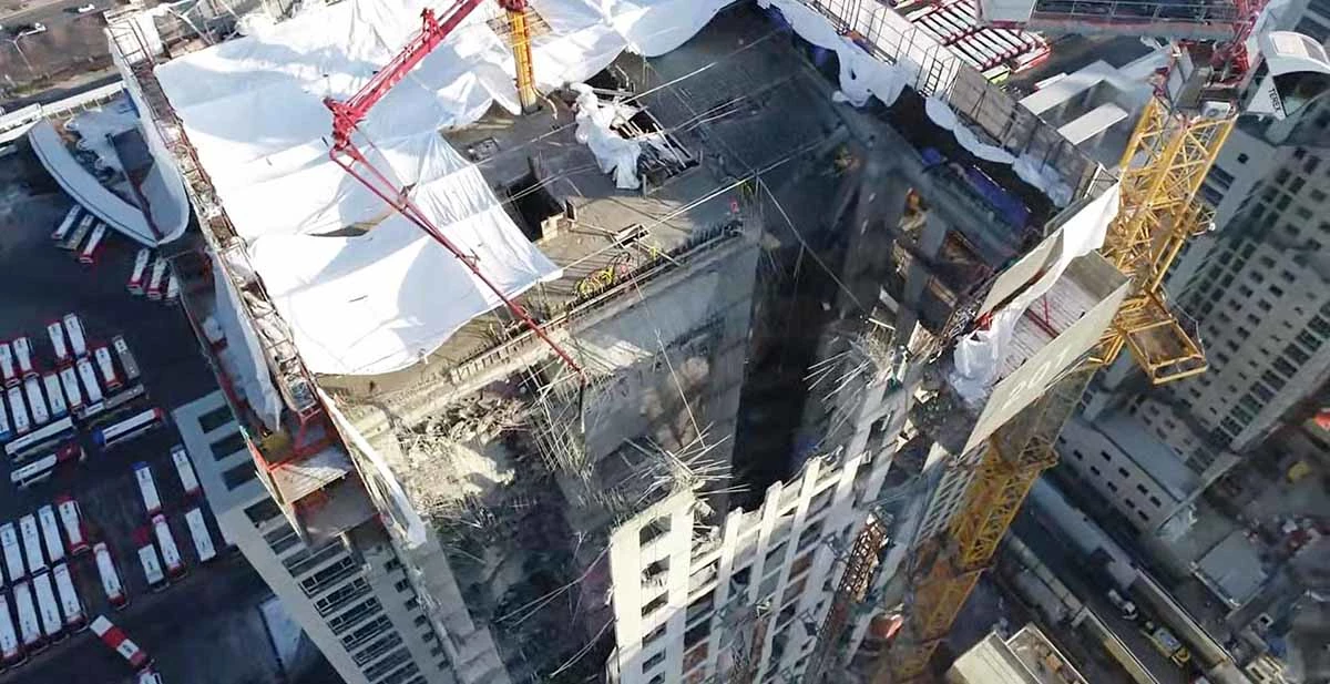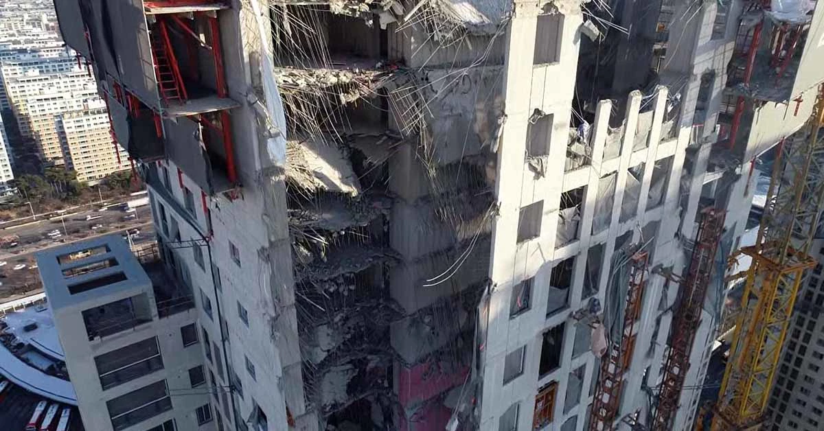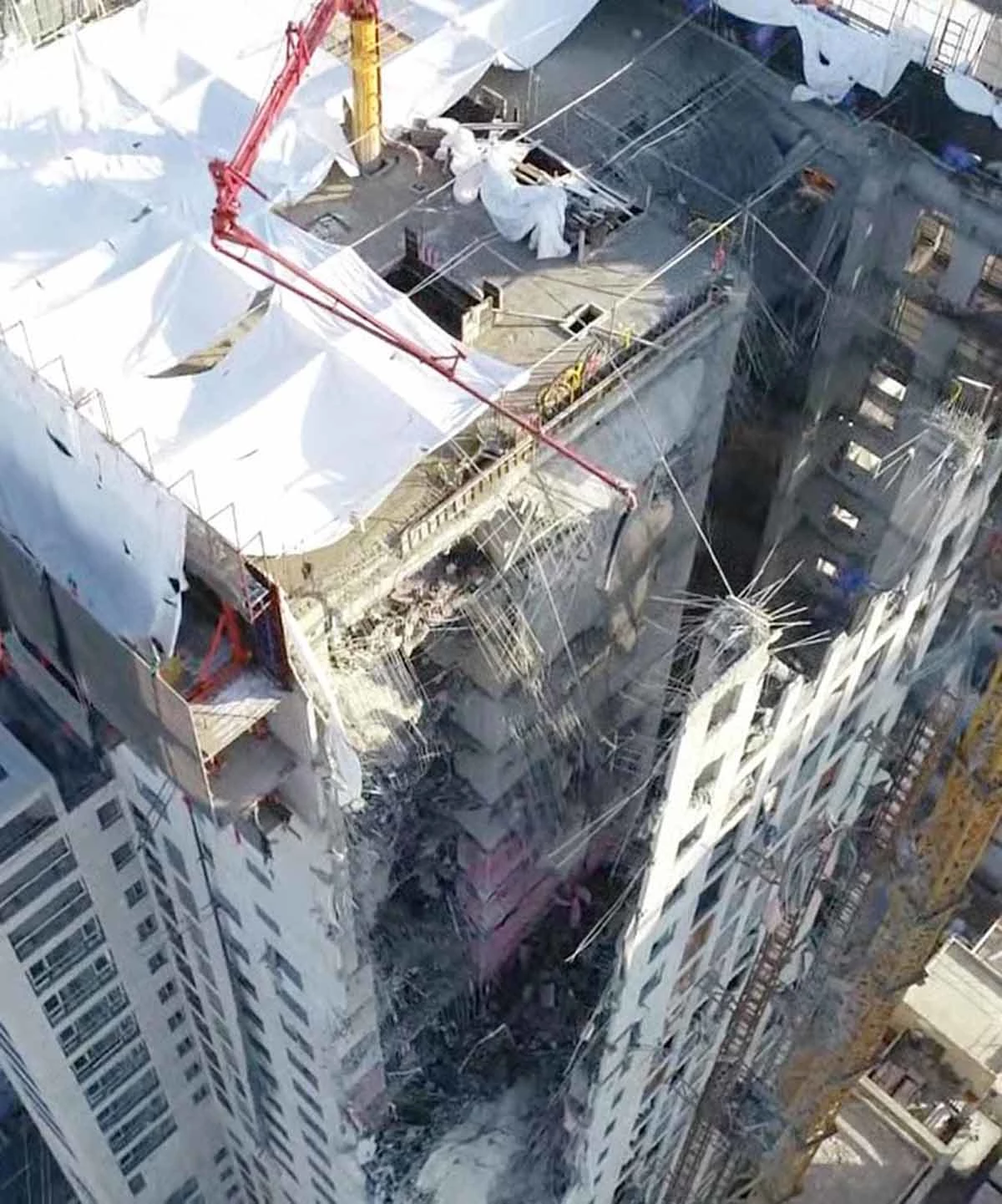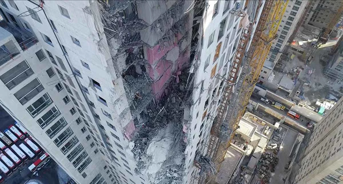 한쪽이 완전히 뜯긴 아파트는 신축 중인 곳이라기보다는 해체 중인 것으로 보인다. 철거 후 재시공해야 한다는 말이 나오는 이유다.