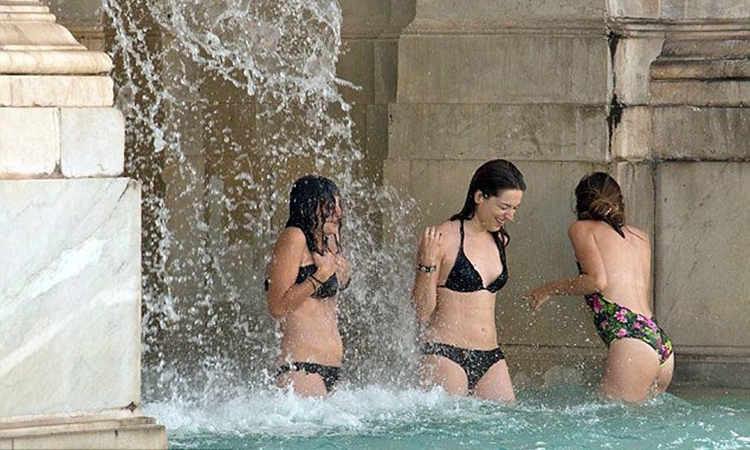 영국 데일리메일에 따르면 수영복 여성 사진들이 소셜미디어에 올라오면서 네티즌 사이에 공분을 일으켰다. 로마 시민들은 관광객들이 오래된 문화재를 존중하지 않는다고 비판했다. 또 아무리 더워도 이런 행동은 용납할 수 없다고 꼬집었다. 지난 주말, 로마 기온은 섭씨 32도를 넘어섰다.