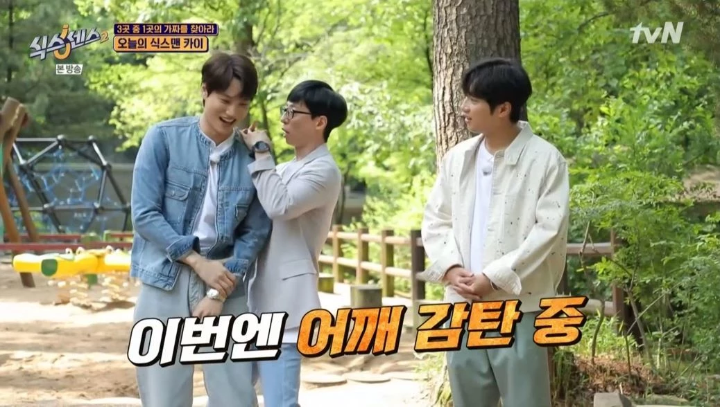 게스트로 카이가 등장하자 '식스센스2' 멤버들은 "카이는 너무 잘생겼지"라며 환호했다. 이어 유재석이 카이의 패션에 감탄하는 사이 여성 멤버들은 긴급회의에 들어갔다.