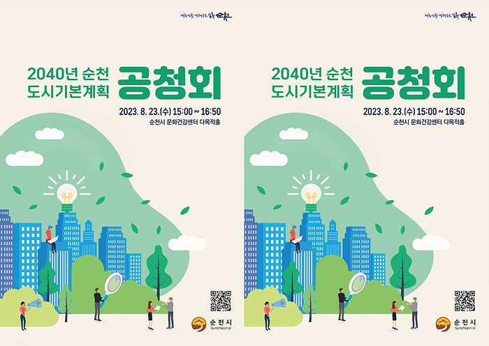 순천시(시장 노관규)가 ‘대한민국 생태수도 일류순천’을 완성하기 위한 첫걸음으로 ‘2040년 순천 도시기본계획 공청회’를 오는 23일 15시 문화건강센터 다목적홀에서 개최한다.