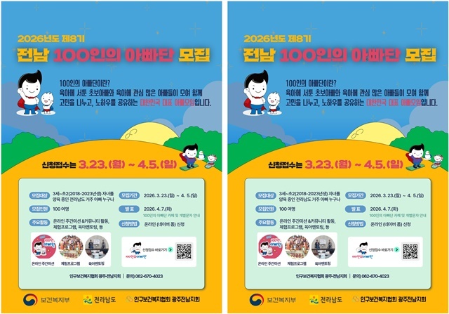 "독박육아 짐 덜고, 아이 웃음 찾아준다"~전라남도, 2026년 ‘100인의 슈퍼맨’ 출격 작전 개시