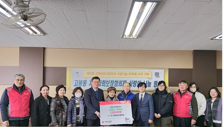 고봉동 지역사회보장협의체 이종억 위원장은 “어려운 시기에 고양송암고등학교 학생 일동의 따뜻한 나눔에 깊이 감사드리며, 기탁금은 도움이 필요한 분들에게 소중히 사용하겠다”고 전했다.