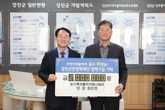 이에 앞서 강진군 농수특산물 직거래사업단은 지난 15일, 2025년 정기총회를 맞아 강진군민장학재단에 인재육성 장학금을 쾌척했다.