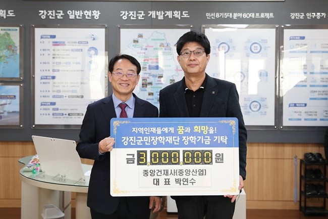 박연수 대표는 “어렵게 공부하고 있는 젊은 친구들에게 실질적으로 도움이 되고 싶어 장학금을 기탁했다”며 “우리 지역의 강진군민장학재단 인재 육성 사업에 함께할 수 있어 기쁘다”고 말했다.