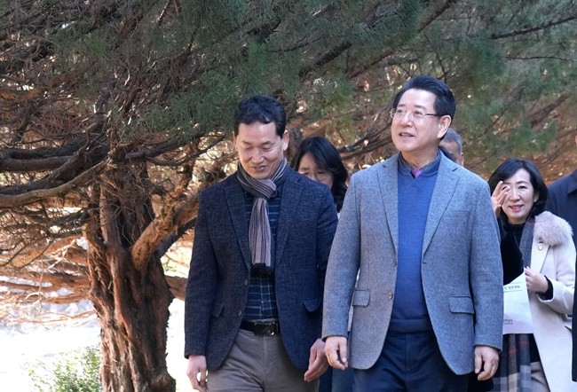 김영록 전라남도지사가 30일 구례군 광의면 ‘천 개의 향나무 숲’ 정원을 방문, 현황에 대해 청취하며 현장을 둘러보고 있다.
