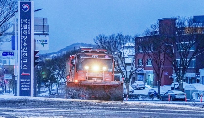 목포는 지난 3일부터 내린 눈과 함께 영하 4도 이하의 강추위가 겹치면서 도로 위 눈이 쉽게 녹지 않는 상황이다. 이에 시는 3일 저녁부터 4일까지 제설차량 6대를 가동해 주요 간선도로 및 경사로를 집중 제설하고 있으며, 제설차량이 진입하기 어려운 이면도로에는 소형 제설기 10대를 투입해 작업을 진행하고 있다.