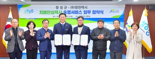 군은 4일 군청 상황실에서 유한회사 영천택시와 ‘치매안심택시 송영서비스’ 업무협약을 체결했다. 협약식에는 김한종 장성군수, 정귀우 (유)영천택시 대표 등 관계자들이 참석했다.