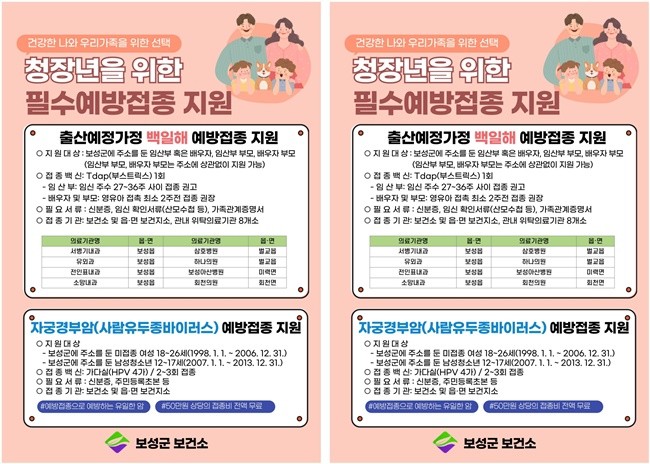 전남 보성군, 백일해 예방접종과 청년 자궁경부암 예방 ‘가다실’ 무료 접종 지원