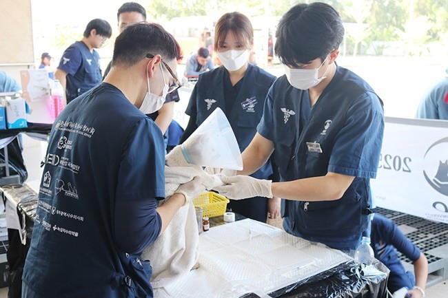 이번 봉사에는 노웅빈 교수(응급중환자의학)와 전남대 동물병원 소속 대학원생 3명, 학부생 16명이 참여했다. 또, 양하영 수의사(24시노아동물메디컬센터 대표원장), 정하진 수의사(우치동물원 진료팀장), 오아름 수의사(야생동물구조관리센터 수의연구사)가 함께하며 의료 지원을 강화했다.