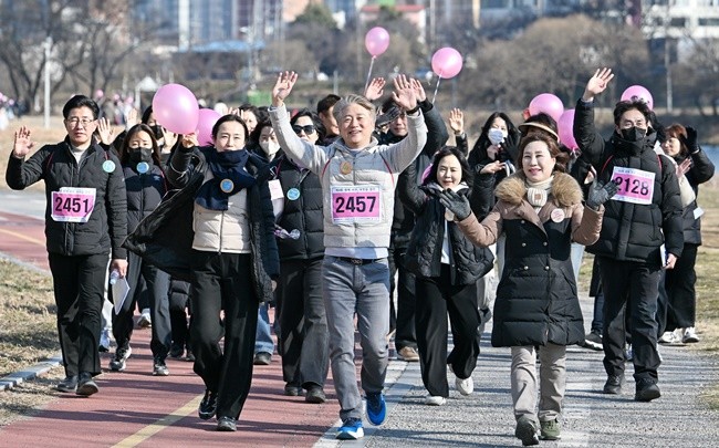 [위키트리 광주전남취재본부 노해섭 기자] 김이강 광주 서구청장이 22일 서구 동천교 일대에서 열린 ‘제4회 함께서구, 오~잇길 걷기대회’에서 서구민과 함께 힘찬 출발을 하고 있다./ 광주 서구 제공
