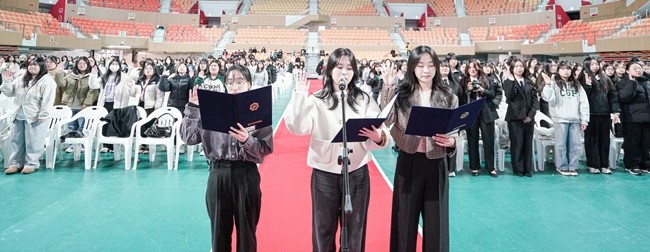 신입생 대표 입학 선서에서는 신입생 대표 자율전공학부 이○영 학생, 편입생 대표 항공서비스학부 장○정 학생, 대학원생 대표 일반대학원 상담임상심리학과 우○영 학생이 입학 선서를 하며 앞으로의 대학 생활에 성실히 임할 것을 다짐했다.