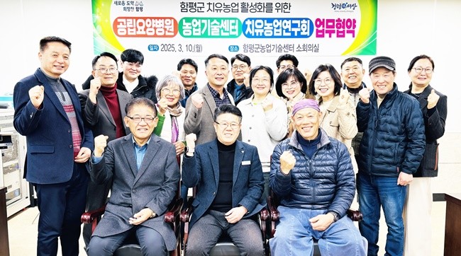 주요 협약 내용은 ▲치유농업 기술 및 정보 제공 ▲사회서비스 대상자(경도인지장애환자) 및 종사자 대상 치유농업 프로그램 제공 ▲환자 참여 지원 및 환경조성 ▲함평군 치유농업 활성화를 위한 공동 협력 등이다.