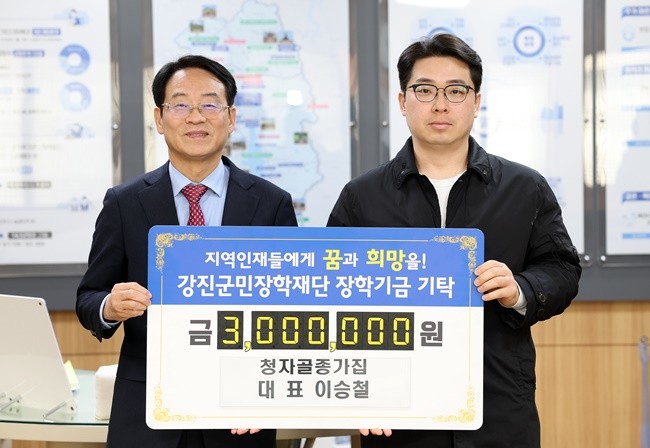 군동면에 위치한 청자골종가집은 매주 수요일 반찬을 정기적으로 기부하고, 의미있는 봉사활동 공익사업을 펼치고 있다. 어려운 학생들에게 실질적으로 도움이 되고자 장학금을 쾌척했다. 이승철 청자골종가집 대표는 “어려운 시기에 강진군의 미래를 책임질 학생들이 좋은 환경에서 올바르게 학업에 열중할 수 있도록 돕고자 장학금을 기탁하게 됐다”며 “어려운 환경 속에서도 학생들이 자신의 꿈을 펼치며 사회 정의를 실현하는 훌륭한 인재로 성장할 수 있도록 지속적인 관심을 갖겠다”고 말했다.