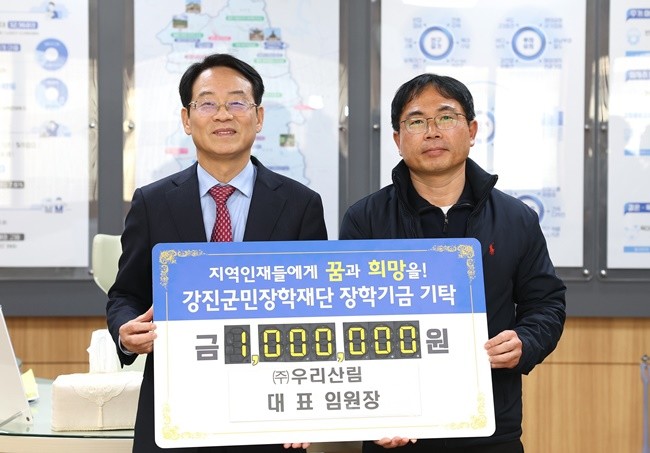강진읍 보은로에 위치한 ㈜우리산림은 숲 가꾸기, 풀베기, 해충방제 등 다양한 산림조경 사업을 하는 기업으로 2018년 설립 이후 꾸준히 장학금 기탁 행렬에 앞장서고 있다.