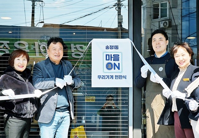 송정1동 주민자치회는 ‘마을ON’ 운영에 동참할 31개 점포를 모집, 17일 ‘마을ON 우리가게’ 현판식을 열었다.