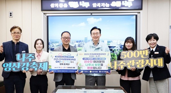 챌린지엔 윤병태 나주시장과 체육진흥과 부서장 및 직원들이 참여해 성공적인 대회 개최를 응원하며 2025 나주영산강축제 등을 홍보했다.