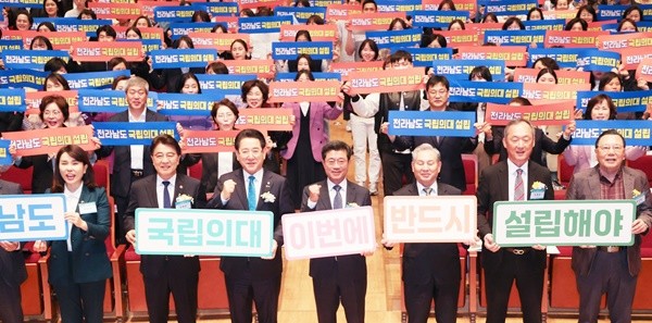 영상 상영에 이어 ‘전라남도 국립의과대학 설립’ 염원을 담은 퍼포먼스가 진행됐다. 내빈을 비롯한 행사 참석자 전원은 전남 도민의 오랜 염원이자 지역의 핵심 과제인 국립의과대학 설립 의지를 하나로 모으는 퍼포먼스에 참여했다.