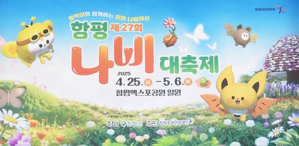 제27회 함평나비대축제는 ‘나비, 황금박쥐를 만나다’라는 주제와 ‘황박이와 함께하는 함평 나비 세상!’이라는 부제로 오는 4월 25일부터 5월 6일까지 함평엑스포공원 일원에서 12일간 개최될 예정이다.