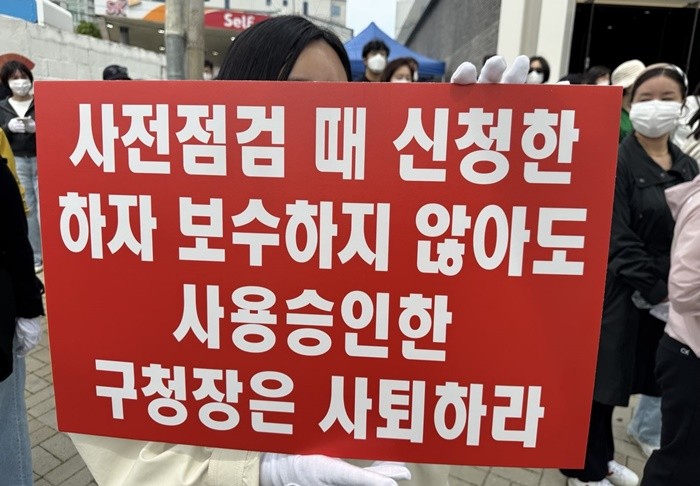 이날 시위에 입주자대표회의 송 옥주 회장은 "관리사무소 2024년 공용부 하자 접수 현황에 하자 1167건, 리스트 35매, 사진 대장 413매 경동건설에 발송한 공문 등 명백한 증거가 있다"라며 "수차례 공문을 발송해도 연차합의로 넘기고 하자보수를 않는다며 이에 반발한 입주민들이 모델하우스를 찿는 시민에게 경동건설의 부실시공을 직접 알리고자 시위에 나섰다"고 배경을 설명했다.
