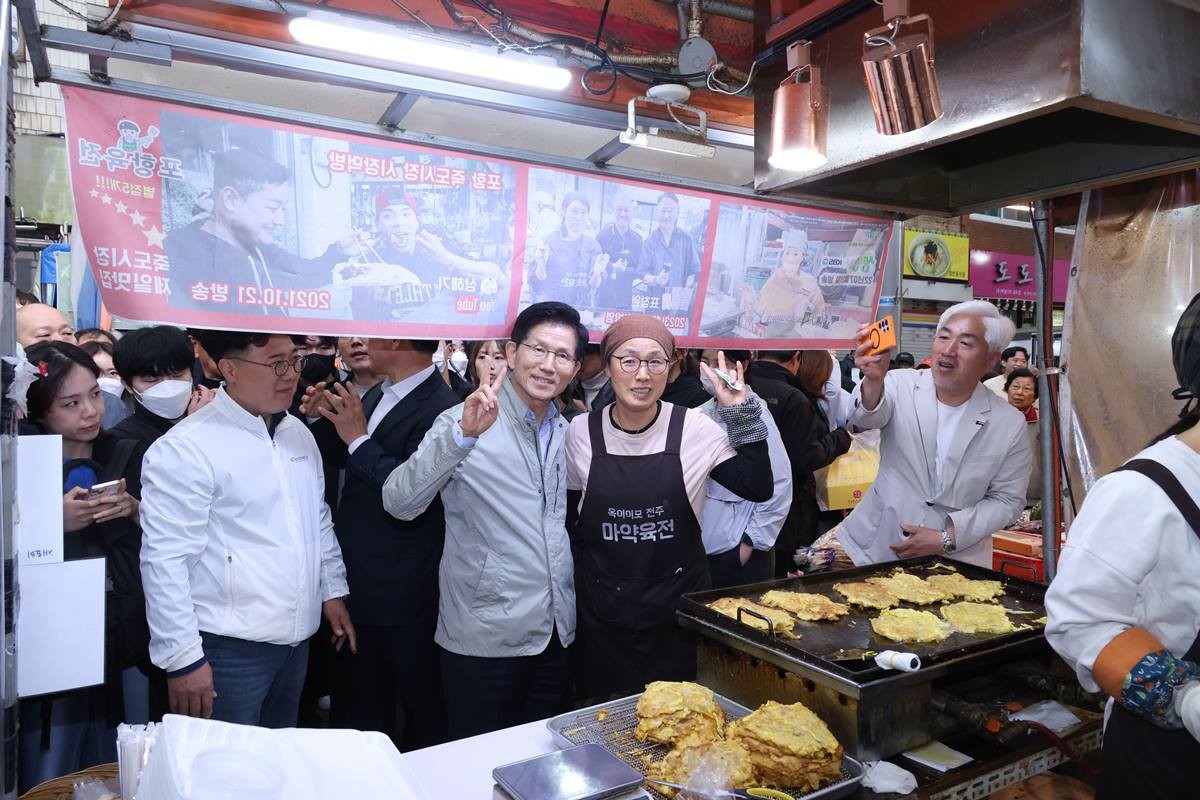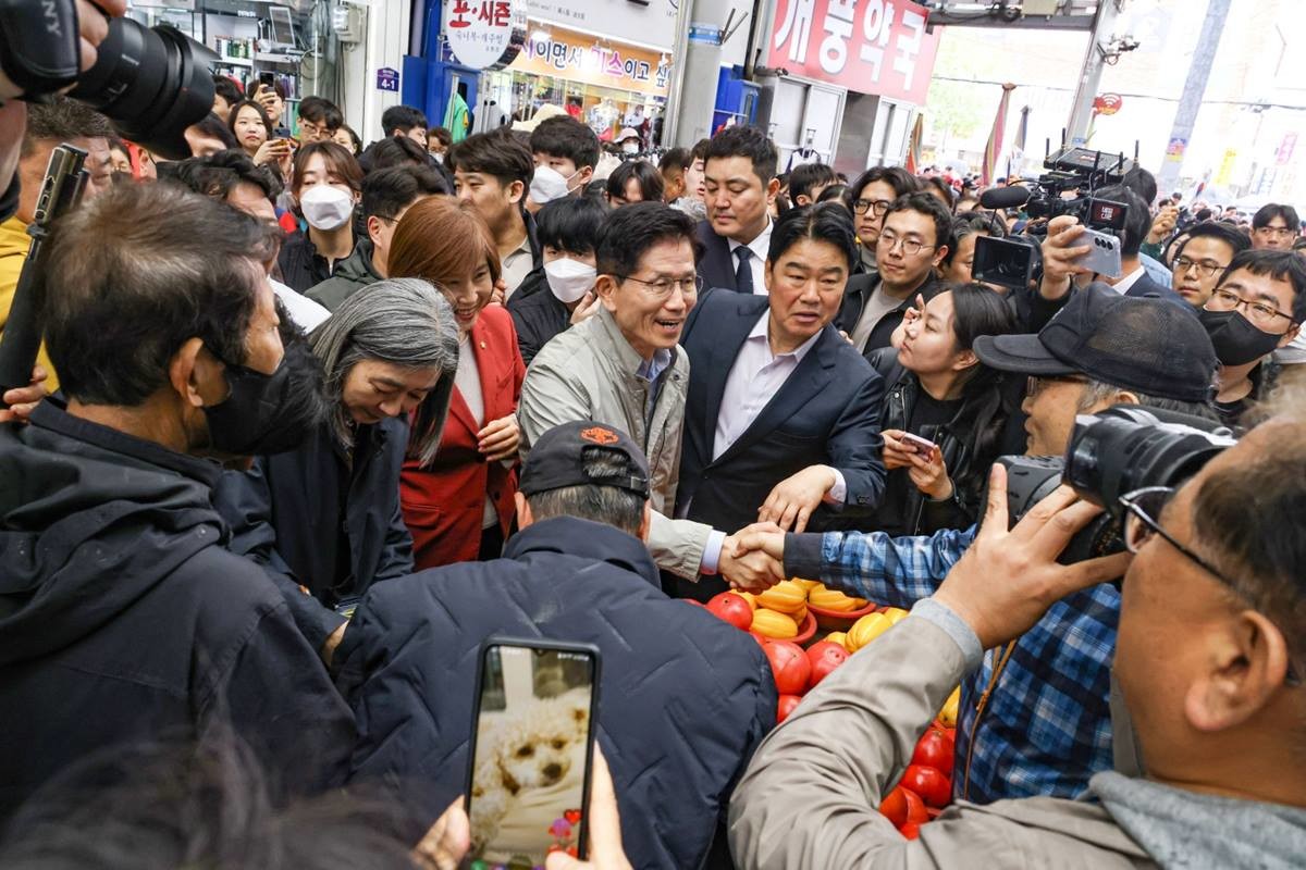 김 후보는 이날 오후 포항 죽도시장을 찾아 시장 상인 및 시민들과 인사를 나눴으며, 올해 10월 2025 APEC 정상회의가 열리는 경주시로 이동했다.