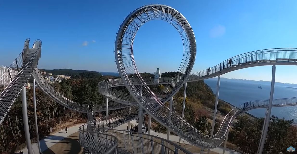스페이스워크는 전체 길이 약 333m, 최고 높이 약 25m에 달하는 대형 철제 구조물로 이름처럼 마치 우주를 걷는 듯한 비현실적인 체험을 선사한다. 공중에 설치된 곡선형 계단을 따라 걷다 보면 포항 도심과 동해 바다, 영일만 일대가 한눈에 펼쳐져 탁 트인 전망을 감상할 수 있다.