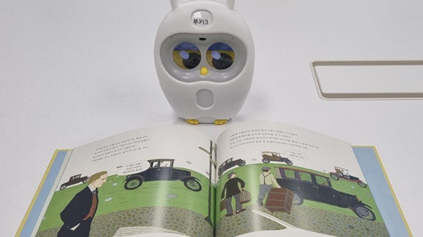 ‘루카’는 AI 비전 기술을 통해 어린이가 책장을 넘기면 해당 페이지를 인식하고, 전문 성우의 목소리와 효과음을 통해 실감 나게 책을 읽어주는 독서 보조 로봇이다. 한글 그림책 2,400여 권을 인식할 수 있으며, 영어 동요와 자장가 기능도 탑재돼 있다.