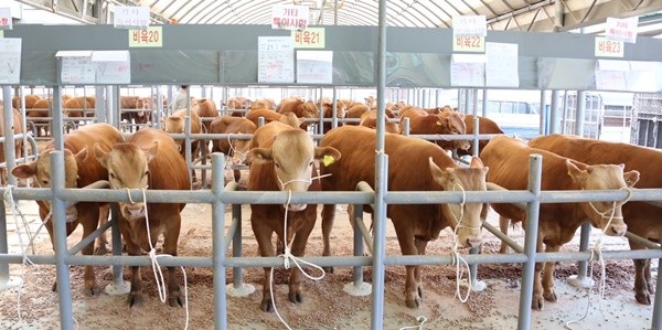 본래 가축시장은 매주 금요일에 열리지만 지난 두 달여 간 한우 거래 중단으로 경영상 어려움이 가중되고 있는 한우 농가 여건을 감안해 이날 재개장에 맞춰 송아지 특별 경매를 진행했다.