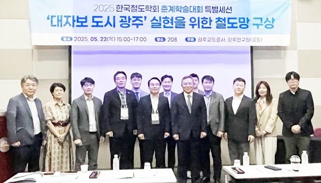 광주연구원과 광주교통공사는 22일 김대중컨벤션센터에서 열린 한국철도학회 춘계학술대회에서 특별세션을 열고 ‘대자보 도시 광주 실현을 위한 철도망 구상’을 주제로 논의했다.