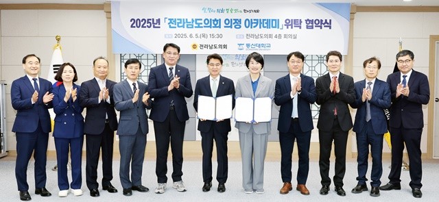 도의회는 5일 동신대학교와 손잡고 ‘전라남도의회 의정 아카데미’ 운영 협약을 체결했다. 이 교육 과정은 지방의회의 입법 역량을 높이고, 정책 대응 능력을 키우기 위한 실전 중심 프로그램으로 구성된다.