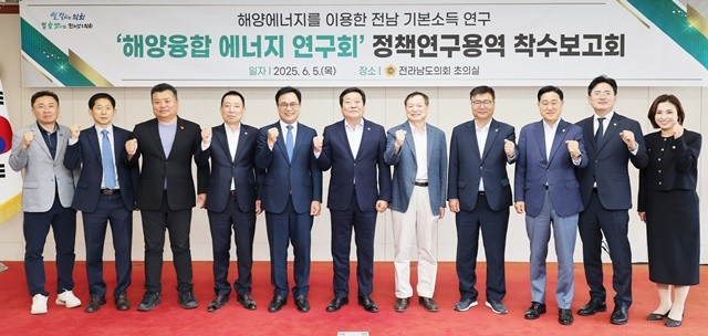 전라남도의회 의원연구단체 ‘해양융합 에너지 연구회’는 6월 5일 도의회 초의실에서 ‘해양에너지 기반 기본소득 모델’ 연구용역 착수보고회를 열고 본격적인 연구에 돌입했다.
