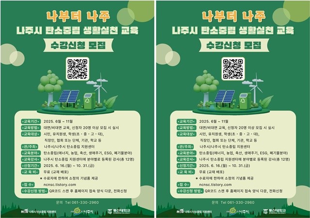 이상득 나주시 탄소중립지원센터장은 “기후 위기 대응력은 시민들의 작은 실천에서 시작된다”며 “2050 탄소중립 목표 달성을 위해 지속적인 교육과 홍보를 이어가겠다”고 말했다.