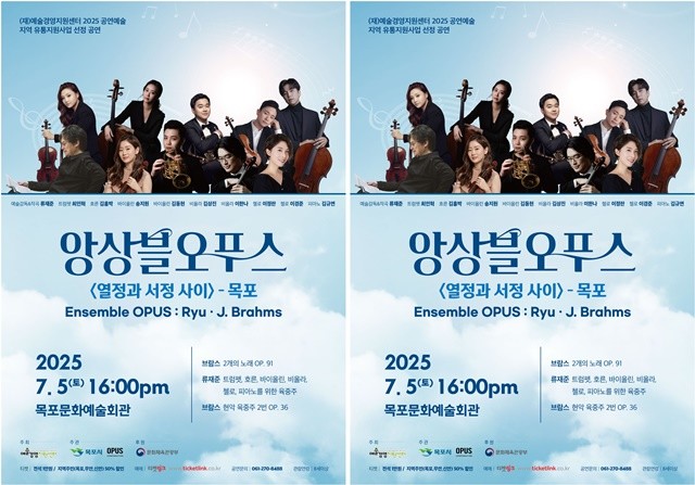 [위키트리 광주전남취재본부 노해섭 기자]목포시 문화예술회관에서는 오는 7월 5일 오후 4시에 기획공연 「앙상블오푸스 ‘열정과 서정 사이’」를 선보인다.