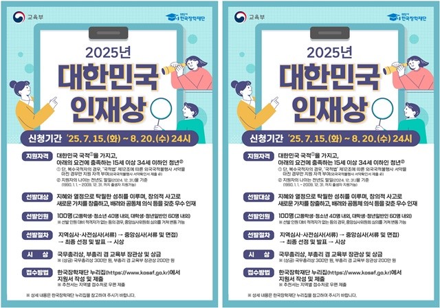 [위키트리 광주전남취재본부 노해섭 기자]광주광역시(시장 강기정)는 8월 20일까지 ‘2025 대한민국 인재상’ 후보자를 모집한다.