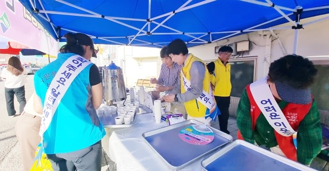 [위키트리 광주전남취재본부 노해섭 기자] 보성군 조성면의 봉사단체들이 말복을 맞아 지역 주민들에게 따뜻한 온정을 나누는 ‘사랑의 온기나눔 릴레이 캠페인’을 8일 조성5일장에서 진행했다.