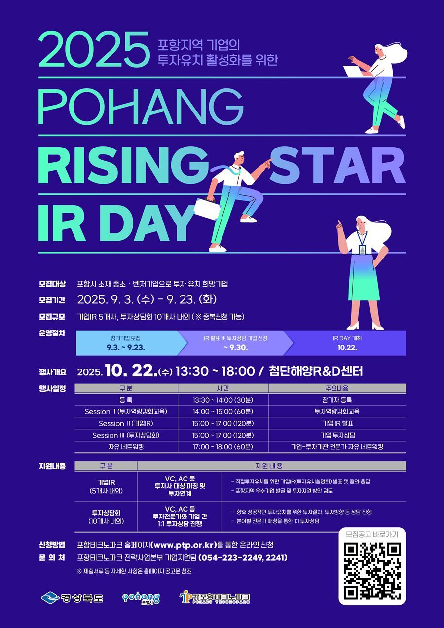 한편, 포항TP는 비즈니스 스케일업 컨설팅, 맞춤형 기업지원, 1사 1PM(Project Manager) 운영, 글로벌 시장진출 프로그램, 중소기업 운전자금 지원 우대 등 다각도의 프로그램을 운영하고 있다.