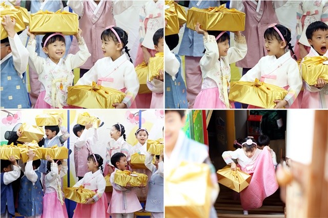 [위키트리 광주전남취재본부 노해섭 기자]추석 연휴를 하루 앞둔 2일 광주시 북구청 어린이집에서 원장선생님과 담임선생님들이 마련한 추석 선물을 받고 아이들이 기뻐하고 있다.