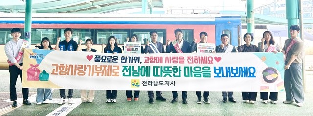 [위키트리 광주전남취재본부 노해섭 기자]전라남도(도지사 김영록)는 2일 목포역·순천역·나주역에서 민족 대명절인 추석을 맞아 ‘고향사랑기부제’와 ‘전남 사랑애(愛) 서포터즈’ 활성화를 위한 고향사랑 실천 캠페인을 진행했다고 밝혔다.