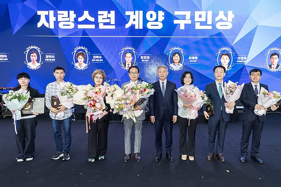 올해 구민의 날 기념 표창은 ‘자랑스런 계양구민상’ 7개 분야(▲사회봉사 김양숙, ▲모범가정 양덕식, ▲문화․예술 최복수, ▲체육 함장영, ▲교육 최혜랑, ▲지역발전 이경옥, ▲특별 김지웅)와 더불어 올해의 공무원상, 모범구민상, 모범시민상 수상자에게 수여됐다.