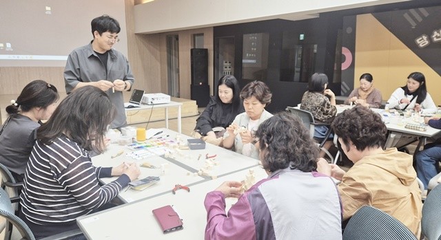 강의는 광주의 대표 어린이 문화예술행사인 ‘어린이목수축제’를 중심으로, 축제의 기획 방향과 굿즈 개발 전략, 참여자 안전 관리 등을 소개하는 이론 중심으로 진행되었으며, 목재 재료를 활용한 체험 시연을 통해 실무 감각을 익히는 시간도 마련됐다. 참가자들은 팀별 토의와 실습에도 적극적으로 참여하며, 지역 문화자산을 활용한 축제 기획과 굿즈 아이디어를 활발히 공유하는 등 열띤 학습 분위기를 보여주었다.