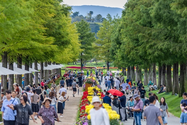 추석 황금연휴가 이어지면서 국가정원은 연휴 내내 가족과 연인 단위 방문객으로 북적였다. 하루 평균 5만 명 이상이 찾았고 정원 곳곳에서는 한복데이, ‘추석 인생네컷’ 촬영 등 다양한 이벤트가 진행돼 관람객들의 호응을 얻었다. 대형 보름달 포토존 앞에는 소원을 비는 방문객이 줄을 이었고, 대형 윷놀이와 제기차기 등 전통놀이마당도 인기를 끌었다.