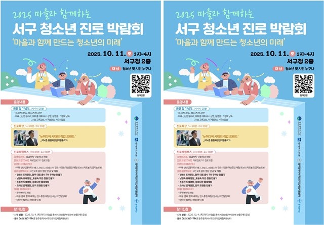 김이강 서구청장은 “이번 박람회는 지역사회 전체가 우리 청소년들의 미래를 함께 고민하고 응원하는 의미 있는 자리”라며, “청소년들이 마을과 더불어 성장하며 자신의 꿈을 향해 힘차게 나아가는 계기가 되기를 바란다”고 밝혔다.