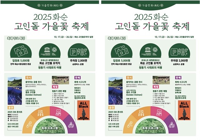 [위키트리 광주전남취재본부 노해섭 기자]화순군(군수 구복규)은 '가을만화(滿花)'라는 주제로 2025년 10월 17일부터 26일까지 10일간 화순 고인돌 가을꽃 축제를 연다.