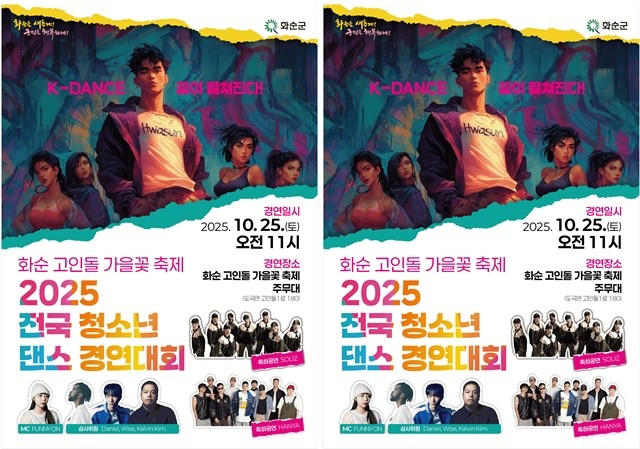 [위키트리 광주전남취재본부 노해섭 기자]화순군(군수 구복규)은 제2회 전국 청소년 댄스경연대회 본선을 오는 10월 25일(토) 오전 11시, ‘화순 고인돌 가을꽃 축제’ 주무대에서 연다고 밝혔다. 이번 대회는 전국 각지에서 37팀이 예선에 지원해, 15개 팀이 본선 무대에 진출했다.