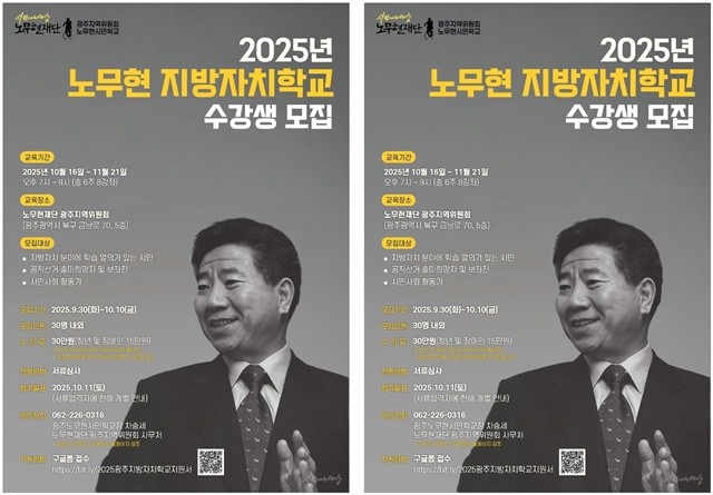 [위키트리 광주전남취재본부 노해섭 기자]광주노무현시민학교가 주관하는 ‘2025 노무현 지방자치학교’가 10월 16일부터 11월 21일까지 광주 금남로에서 열린다. 이 과정은 노무현 전 대통령의 철학을 중심에 두고, 전문성과 실전역량을 갖춘 지방자치 리더 양성을 목표로 한다.