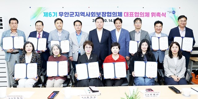 제6기 대표협의체 민간위원장은 박상규 지역아동센터 연합회장, 부위원장에는 박성남 무안군장애인종합복지관장이 선출되었으며, 사회보장 분야의 경험과 학식이 풍부한 총 15명의 위원이 대표협의체 위원으로 위촉됐다.