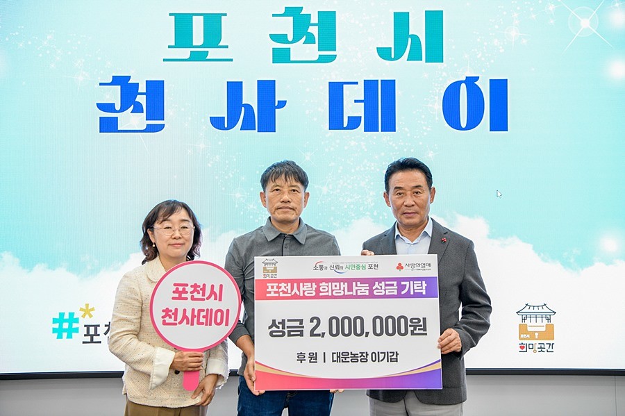 경기 포천시(시장 백영현)는 지난 15일 시청 시정회의실에서 ‘선행하기 좋은 날, 포천시 천사데이’ 이웃돕기 기탁식을 개최했다.