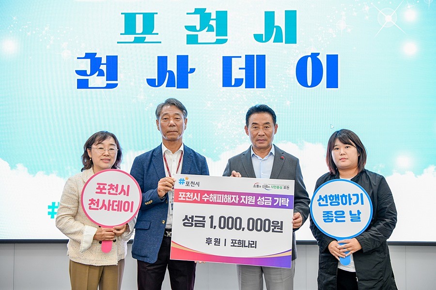 기탁된 성금과 현물은 총 1,890만 원 상당으로, 포천시 이웃돕기 성금 계좌인 ‘희망곳간’에 예치되어, 취약계층 지원과 수해 피해자 지원에 소중하게 사용할 예정이다.