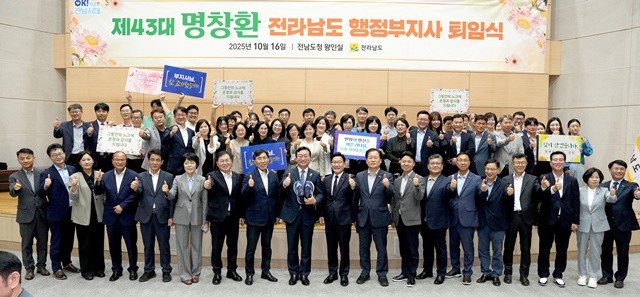 [위키트리 광주전남취재본부 노해섭 기자]전라남도의 미래 성장동력 확보를 위해 2년 2개월간 쉼 없이 달려온 명창환 제43대 행정부지사가 30여 년의 공직 생활을 마무리하고 정든 도청을 떠났다. 동료들은 그의 헌신에 박수를 보내며 석별의 정을 나눴다.