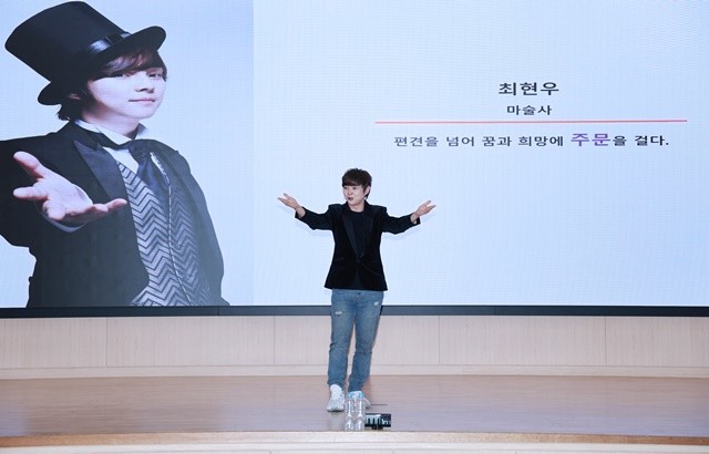 최현우 마술사는 '편견을 깨는 마술 같은 3가지 이야기'라는 주제 아래, 자신의 인생 경험과 마술의 원리를 절묘하게 엮어냈다. 그는 유쾌한 입담 속에서 고정관념을 버리고 열린 시각으로 세상을 바라볼 때 비로소 놀라운 변화가 시작된다는 메시지를 전달하며 참석자들의 큰 공감을 얻었다.