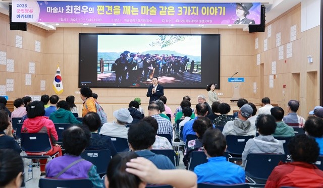 화순군이 매달 운영하는 '군민행복 아카데미'는 다양한 분야의 명사를 초청해 군민들에게 배움과 성찰의 기회를 제공하는 프로그램이다.